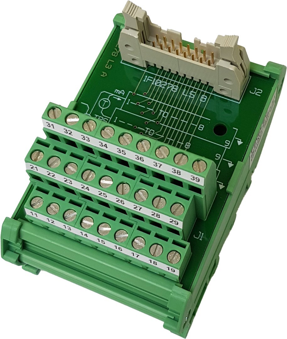 8 channels - Analog Input (4-20mA) 2, 4 wires. HE10-16 connector for connection with DCS or PLC.