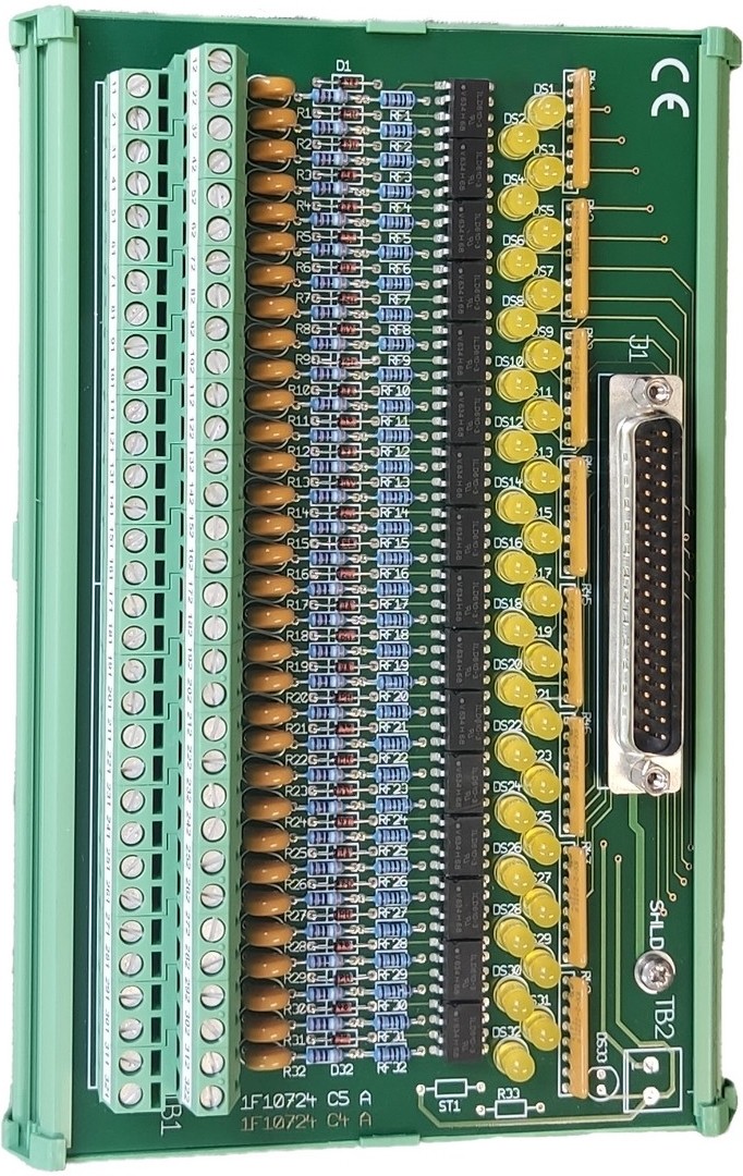 32 channels - Discrete isolated Inputs. Dry Contacts or proximity detectors - Input powered by 24Vdc. SUBD37 connector for connection with the DCS or PLC (Sinking type).